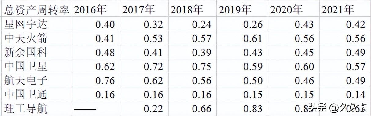 中国卫通的运营效率最低,且一直以来都很低,不再下一步研究