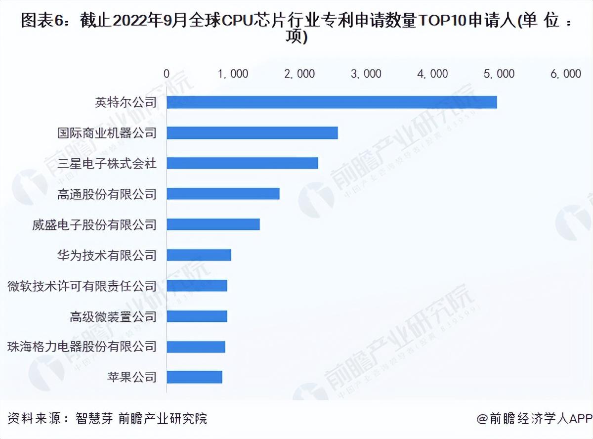 根据前瞻经济学人数据显示,截至2022年9月,全球CPU芯片行业专利申请数量Top10中,格力也入列全球排名第九。