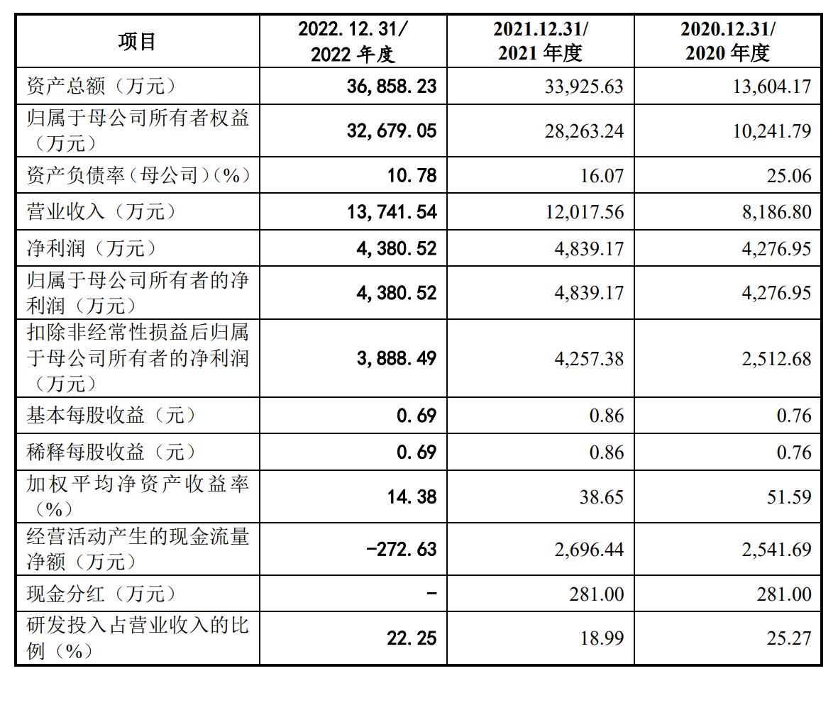 招股书显示,中创软件2020年、2021年、2022年营收分别为8187万元、1.2亿元、1.37亿元;净利分别为4277万元、4839万元、4381万元;扣非后净利分别为2513万元、4257万元、3888万元。
