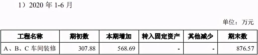 此外,中加特在财务数据的披露方面还有很明显的瑕疵,如在建工程。据招股书披露,2020年1-6月,公司的在建工程包括ABC车间装修、室外建筑工程、设备安装、其他工程四个项目,当期增加额分别为568.69万元、0.00万元、91.35万元、0.58万元,当期转入固定资产金额分别为0.00万元、5.34万元、91.35万元、32.49万元。可以计算出,在建工程当期合计增加金额660.62万元、合计转固金额129.18万元。然而,招股书的合计结果却是,当期合计增加金额2773.17万元、合计转固金额2250.35万元,完全与明细数据不匹配。