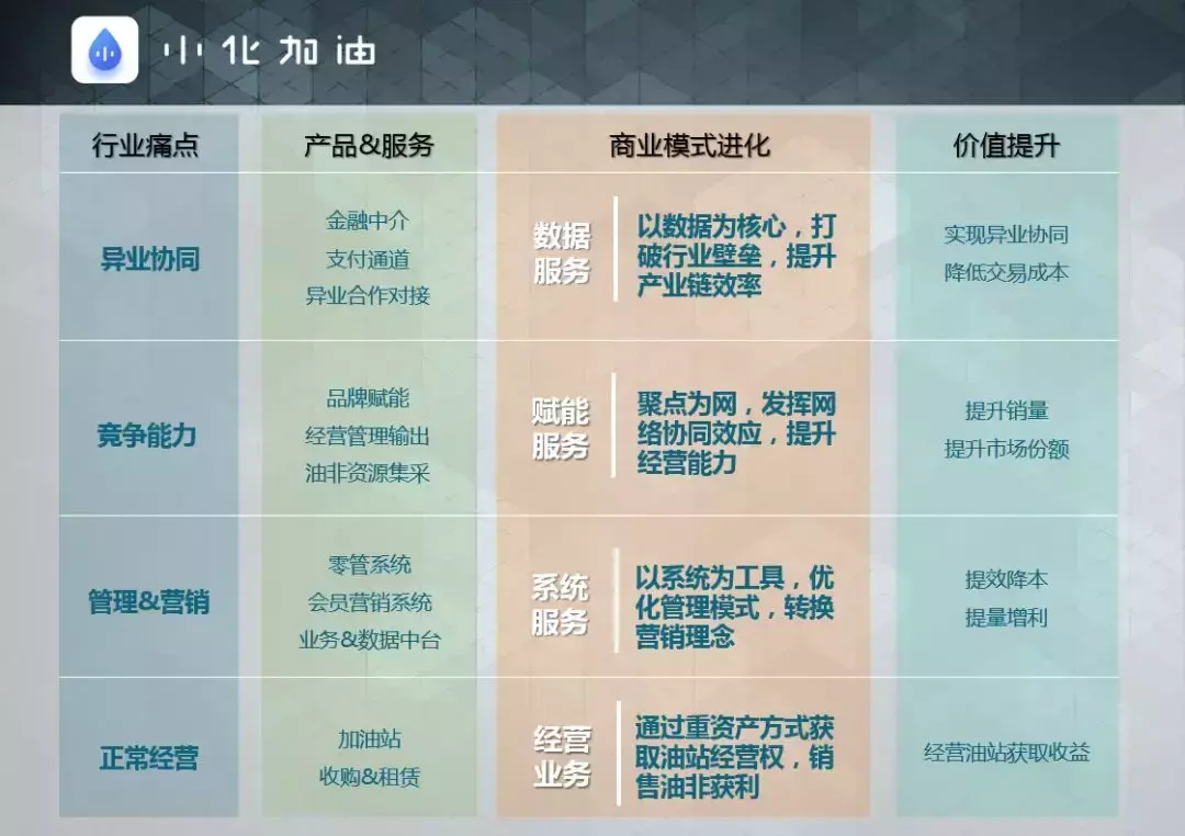 除此之外,小化加油还面向民营加油站用户,帮助没有技术研发能力的油站通过大数据、云服务、人工智能、物联网等技术提升加油站的会员营销和运营管理水平。通过针对性的服务,让油站的营销费用花的更有效率,让车主会员的体验更好,从而达到会员黏性的提高。截至目前,