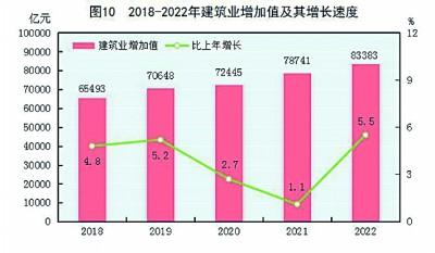 全年建筑业增加值83383亿元,比上年增长5.5%。全国具有资质等级的总承包和专业承包建筑业企业利润8369亿元,比上年下降1.2%,其中国有控股企业3922亿元,增长8.4%。(见图10)