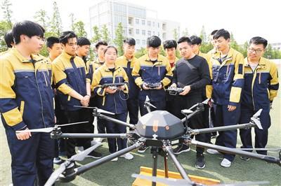 5月9日,在江苏省赣榆中等专业学校,建筑工程系学员在观看无人机测量实操实训展示。 司伟摄(人民视觉)