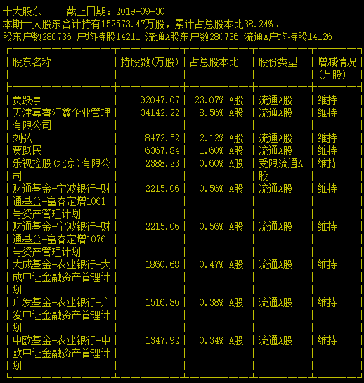 乐视网2020年一季报数据显示,截至2020年3月31日,公司股东数量约为28万户。其中,贾跃亭持股数量为9.2亿股,占比23.07%,为乐视网第一大股东;贾跃民持有6368万股,占比1.6%;乐视控股(北京)有限公司持有2388万股,占比0.6%;值得注意的是,上述三者所持股份全部处于冻结状态。