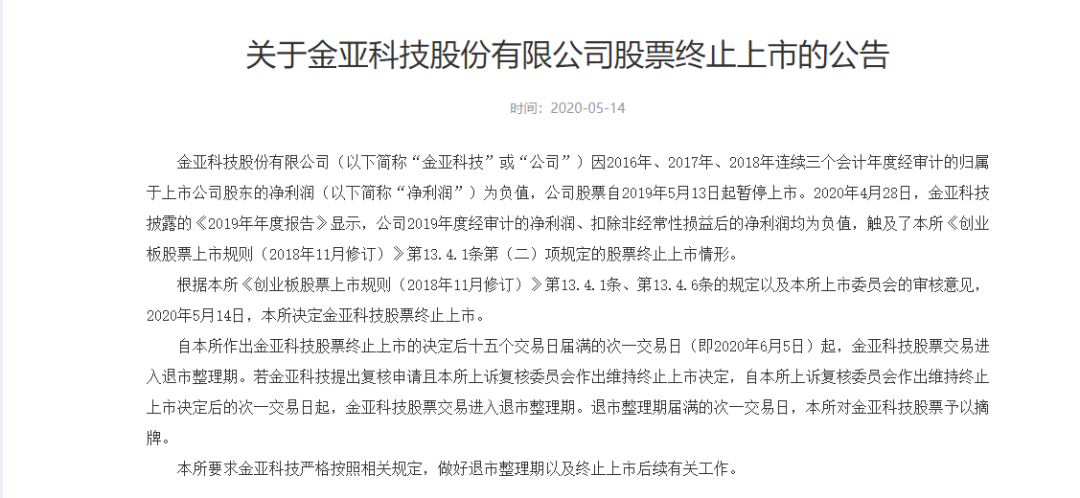 与乐视一同被终止上市的还有2015年的另一只牛股金亚科技。