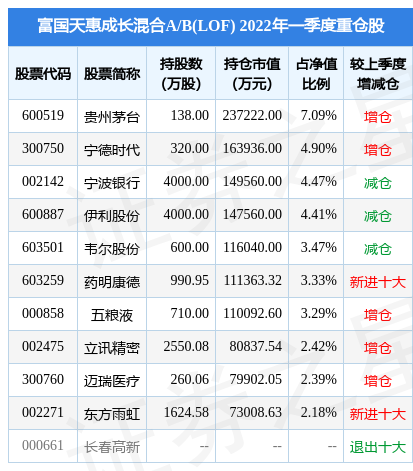 富国天惠成长混合A/B(LOF)的前十大重仓股如下: