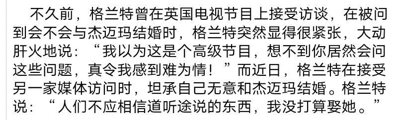 格兰特后来又交的女朋友是英国名媛杰迈玛,他们在一起的时候,杰迈玛已婚,而她的丈夫是巴基斯坦前总理伊姆兰,而她的闺蜜是戴安娜王妃,所以你知道杰迈玛的来头了。