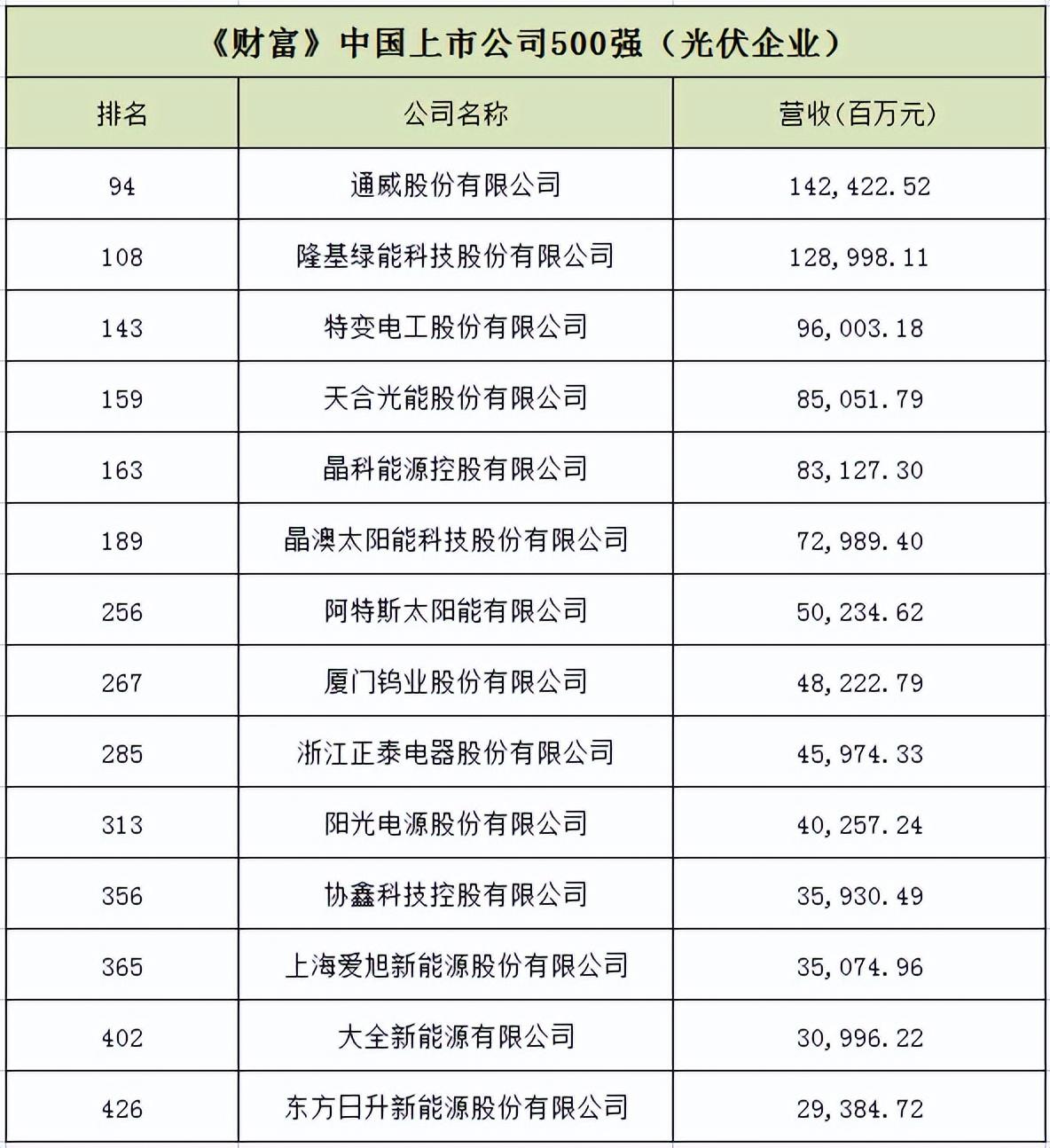 《财富》中国上市公司500强出炉!14家光伏企业榜上有名-软件方面的上市公司