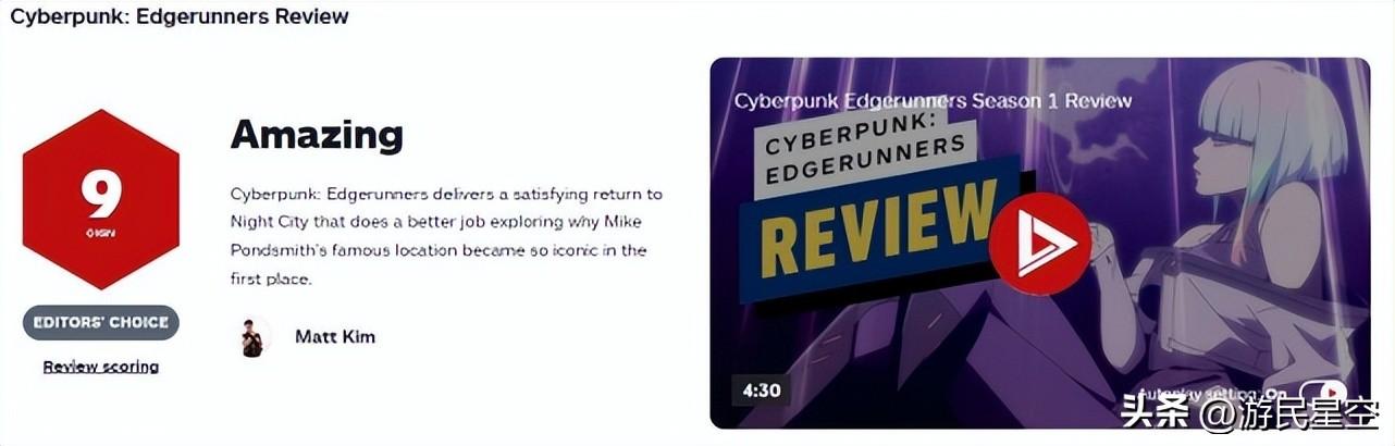 这部网飞出品的动画自9月13日上线以来口碑爆棚,IGN、GameSpot等游戏媒体纷纷给到了9/10的高评价,不吝赞美之词的称它是“夜之城最好的版本”、“网飞最好的动画之一”。