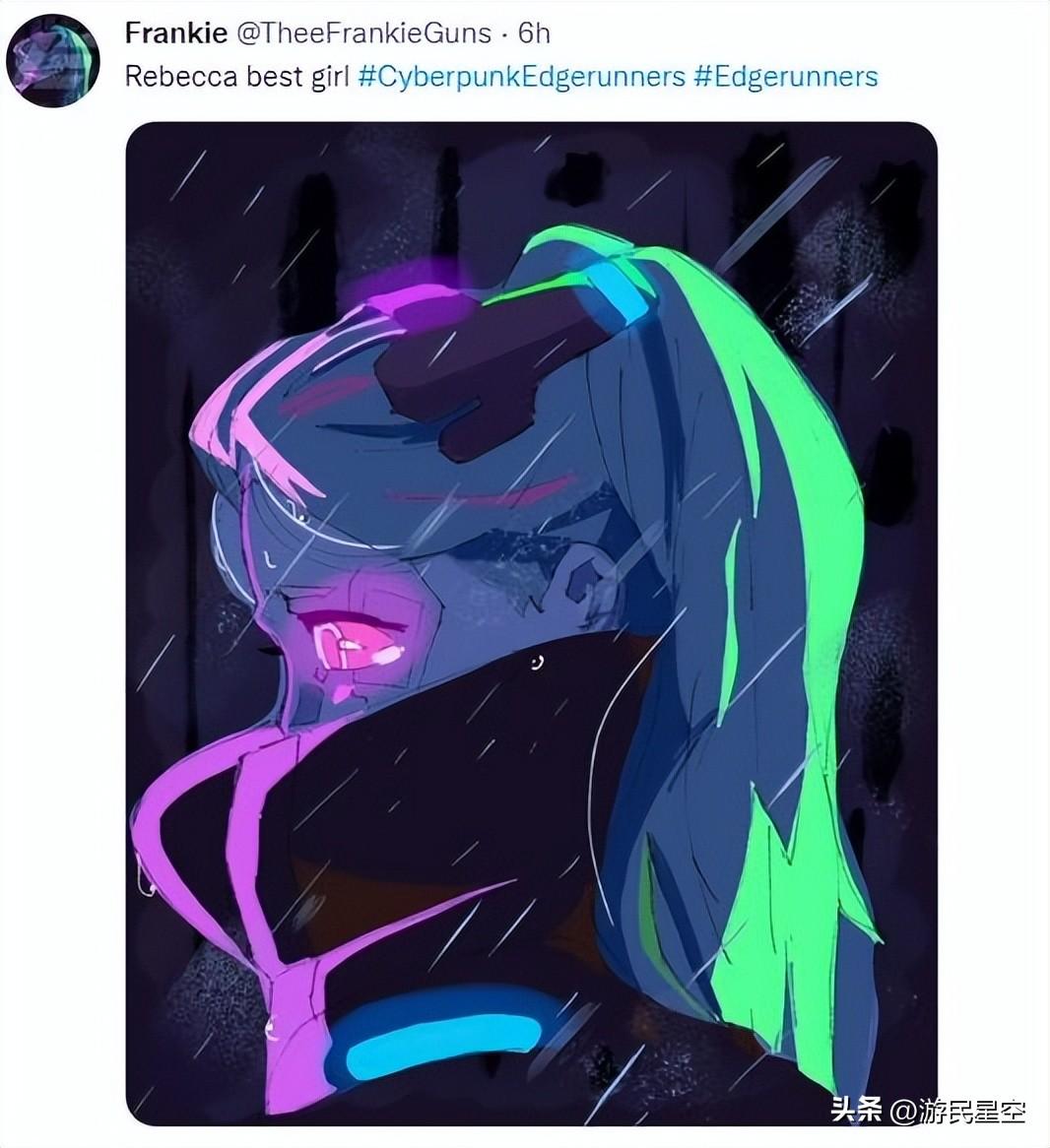 《边缘行者》两位女性主角白发高冷御姐露西、暴走萝莉丽贝卡也是火速走红,凭借人设征服了观众。有画力的网友开始大量创作两人的同人作品,喜欢开脑洞的观众开始做梗图以及责怪CDPR为什么不出一部二次元《赛博朋克》。当然更多的网友还是选择投身到了与亚当·重锤先生的亲密接触活动中。
