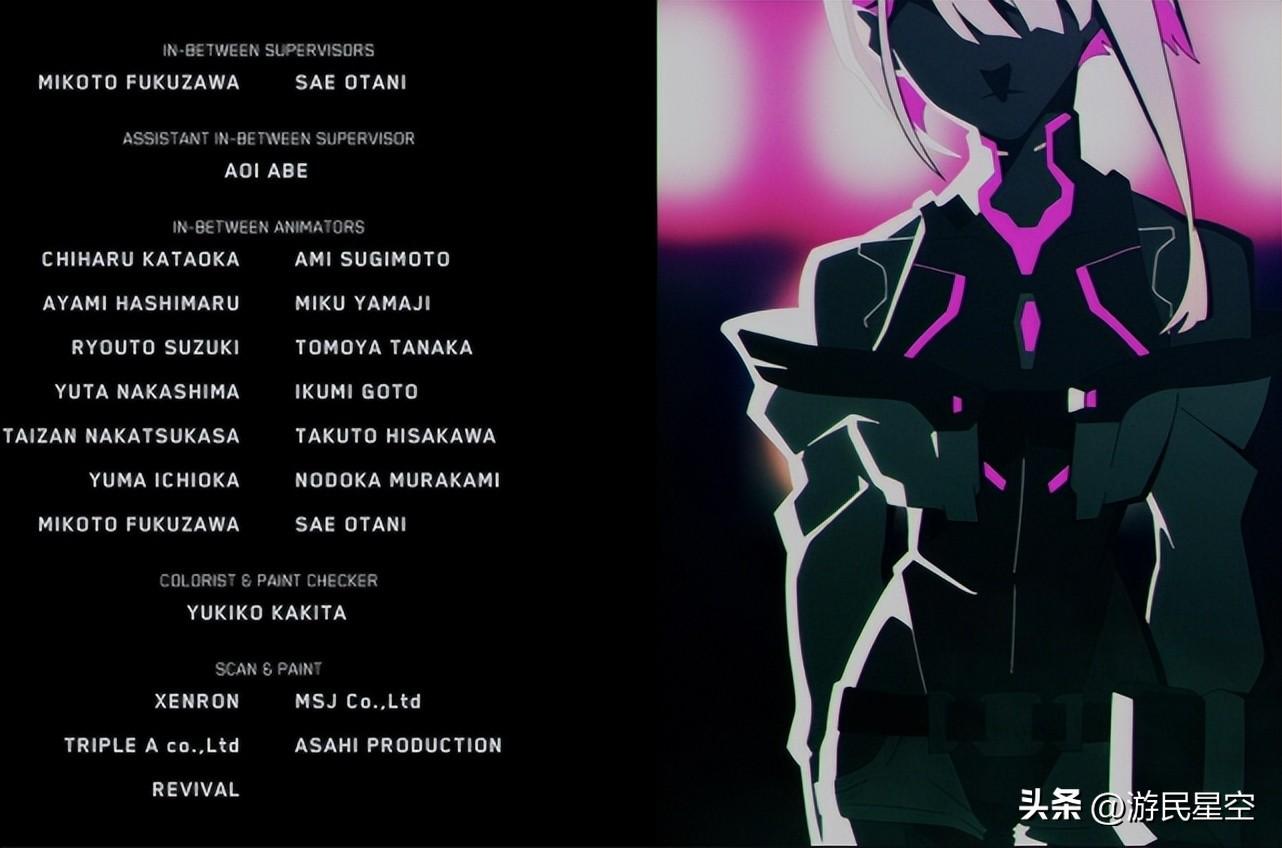 在阵容上除了扳机社的核心力量,《寂静岭》系列音乐总监山冈晃、前扳机社画师米山舞都、《绝命毒师》的“炸鸡叔”等等外援都在方方面面参与了《边缘行者》的制作,带来效果也是有目共睹,整部动画在作画、音乐、配音上就已经保持了相当水平。