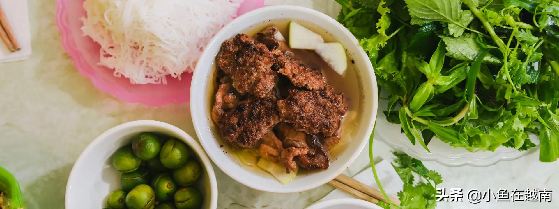 ,越南最负盛名的美食,越南河粉(发音为“fur”)本是早餐食用的主汤,但是实际上在越南全国从早到晚都可以享用。粉汤由煮熟的牛骨经过肉桂和八角茴香调味后做成,散发出浓浓的肉香,上菜前再撒上肉片、面条、草药和洋葱。Pho bo意思是汤里加的牛肉而pho ga是鸡肉。价格便宜,美味又有充实感,这样你就能理解为什么这道菜占领了整个河内了!