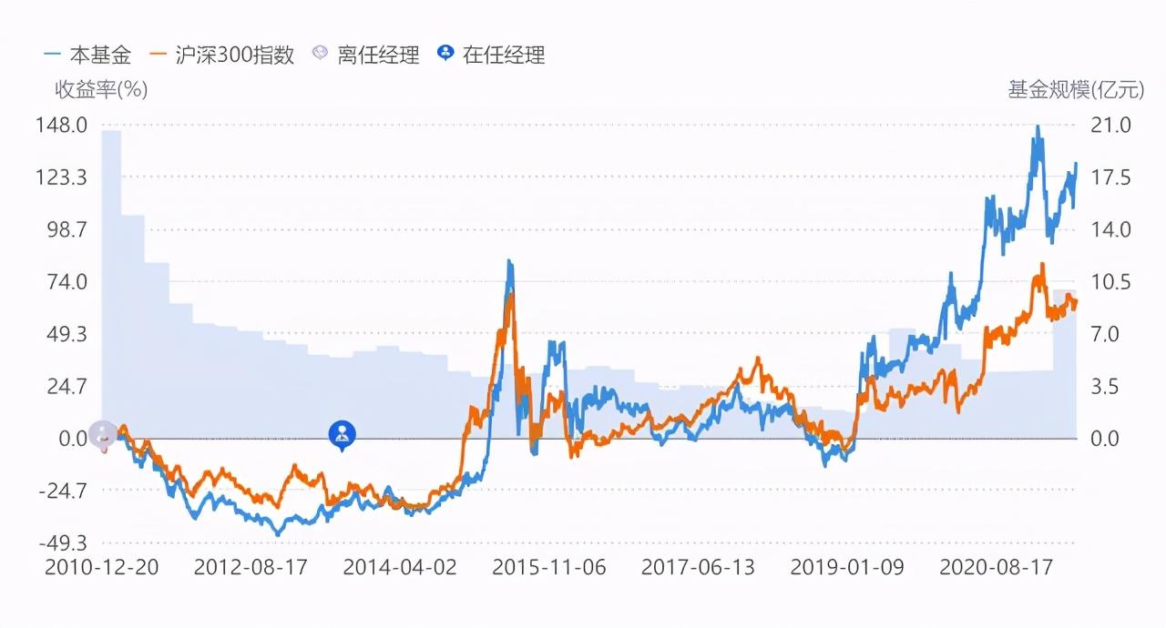 点评:可以看出,陈立先生2013年接手后业绩表现出较大的不稳定,不管是牛市熊市,都不能完全跑赢沪深300指数。