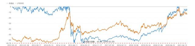 2020年疫情期间、2021年抱团股崩盘时回撤小于沪深300指数。