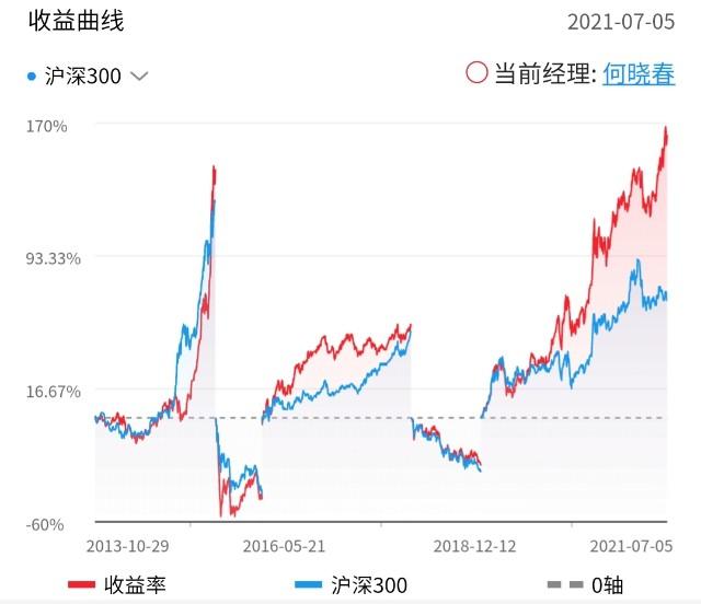 点评:何晓春先生正好是2018年2月大跌之后接手,后面收益是跑赢了沪深300指数。