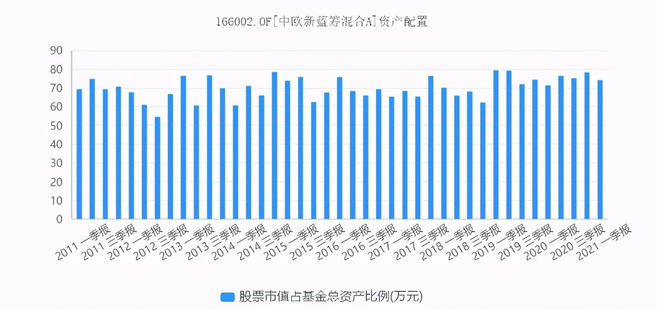 本来我们说的是中欧新趋势混合,但是我们看周蔚文先生从2011年8月开始,还是与别人合作,而中欧新蓝筹是2011年5月自己挑大梁,我们就以中欧新蓝筹混合作为代表作品吧。