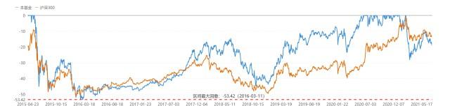 点评:从回撤控制来看, 可以看到郭杰先生2020年疫情、2021年抱团股崩盘时回撤都大于沪深300指数,特别是今年的大幅回撤,可见大概率是抱团白酒股了。