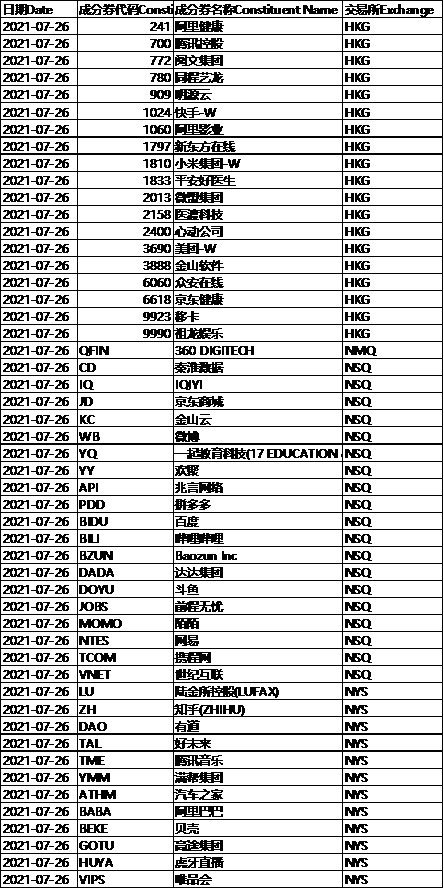 作为样本股,采用自由流通市值加权计算,反映在海外交易所上市知名中国互联网企业的投资机会。