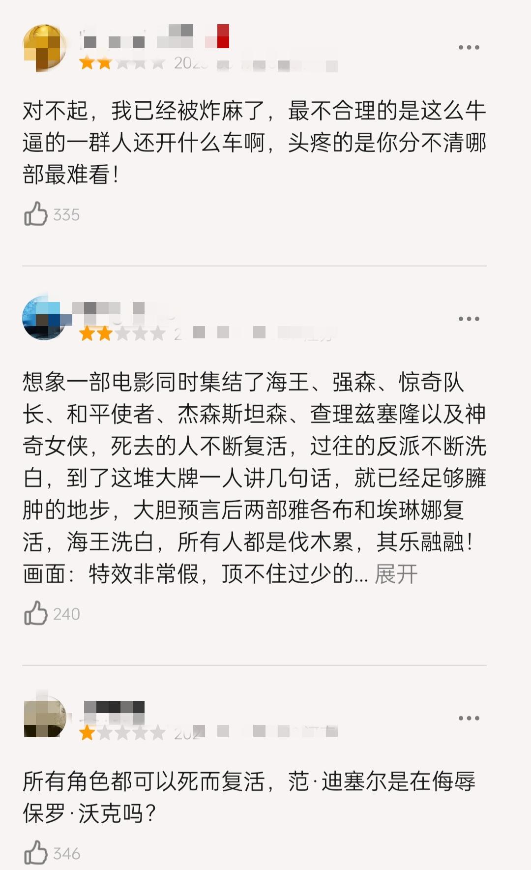 本以为《速10》可以挽回口碑,结果却不尽人意,该片一经上映便收获大量差评,豆瓣评论区清一色一星二星差评,观众纷纷吐槽:已经出现审美疲劳了,除了看他们还能把车飞到哪种程度,其他的毫无惊喜感了。马达的轰鸣声和肾上腺素的激增,已经快要麻木了!