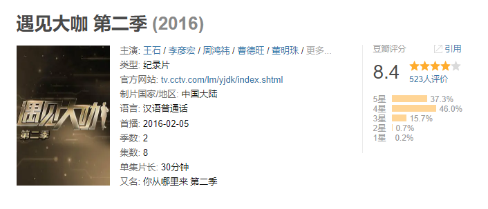 究其原因,也是因为在当下快餐式文化盛行的时代,像《遇见大咖》这样具有深度又接地气的访谈节目更能引发思考、引起大家情感共鸣。而且看过该节目的观众都知道,《遇见大咖》是国内唯一一档以纪实为主的财经人物纪录片。