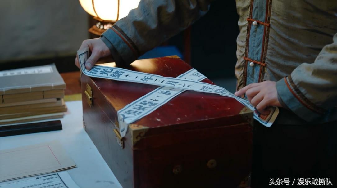 在第7集中,赵白石跟踪吴家大管家,拿走了那袋假血碣,并封在箱中交给恩师张先生,当时箱子上的封条正是“光绪十一年三月六日”。