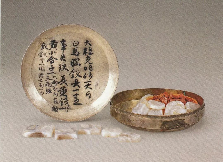 陕西何家村出土的唐代银盒,里面标明装有“大粒光明砂”,也就是炼丹术中被视为至尊之物的“丹砂”。