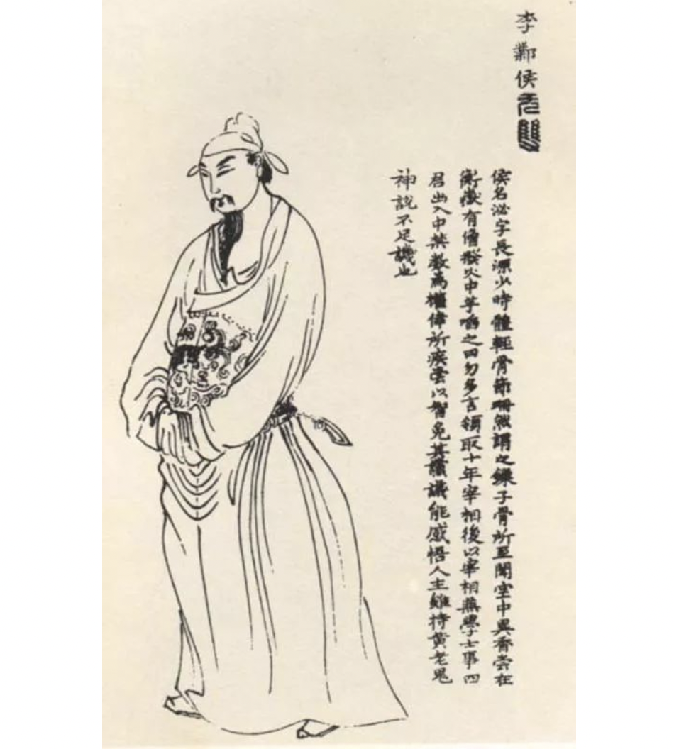 李泌画像,在李泌之子李繁所撰写的《邺侯家传》中,李泌在孩童时代,就被一位道士预言“十五岁必白日升天”。为了防止失去这个孩子。到了这一年的八月十五日彩云飘来,空中仙乐袅袅,异香袭来时,“李氏之亲爱乃多贮蒜齑至数斛,伺其异音奇香之至,潜令人登屋,以巨杓飏浓蒜泼之,香乐遂散”。