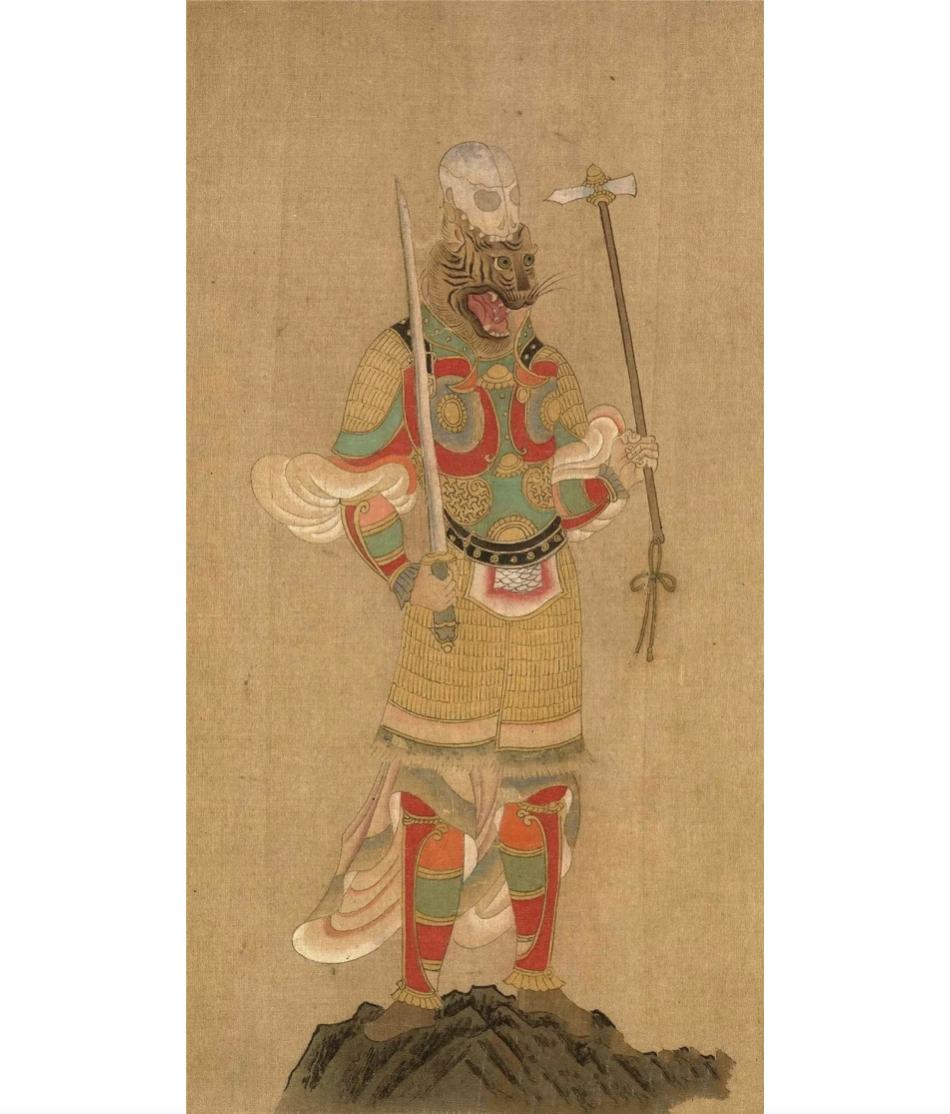 夜已渐深,刻漏已经指向三更四点,正是一天中最黑暗的时刻。只见一位“多髯而长,碧衫皂裤,以红为褾,又以紫縠画虹霓为帧,结于两肩右腋之间,垂两端于背,冠皮冠,非虎非豹,饰以红罽,其状可畏”的家伙,不知从哪里出现,他手中拿着一柄长达尺余的金匕首,向候在一旁的将军叫道:“时到矣——”