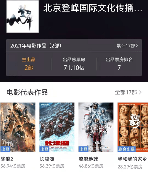 作为第七大出品方,北京登峰国际占多少投资份额并不清楚,但通过《长津湖》及续集《水门桥》,一定赚得盆满钵满。