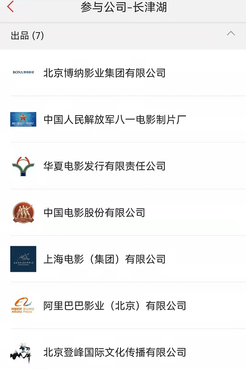 《长津湖》主要出品方7家,联合出品方9家,发行方4家。