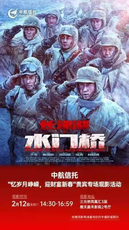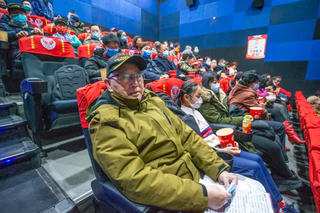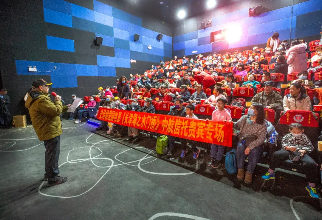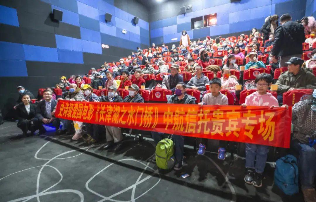 2月12日下午,北京市三元桥凤凰汇3层橙天嘉禾影院,在中航信托举办的专场观影活动中,38军后代近100人参加观影活动,观看电影《长津湖水门桥》, 一起铭记不朽历史,缅怀致敬伟大先辈,致敬英雄先烈。