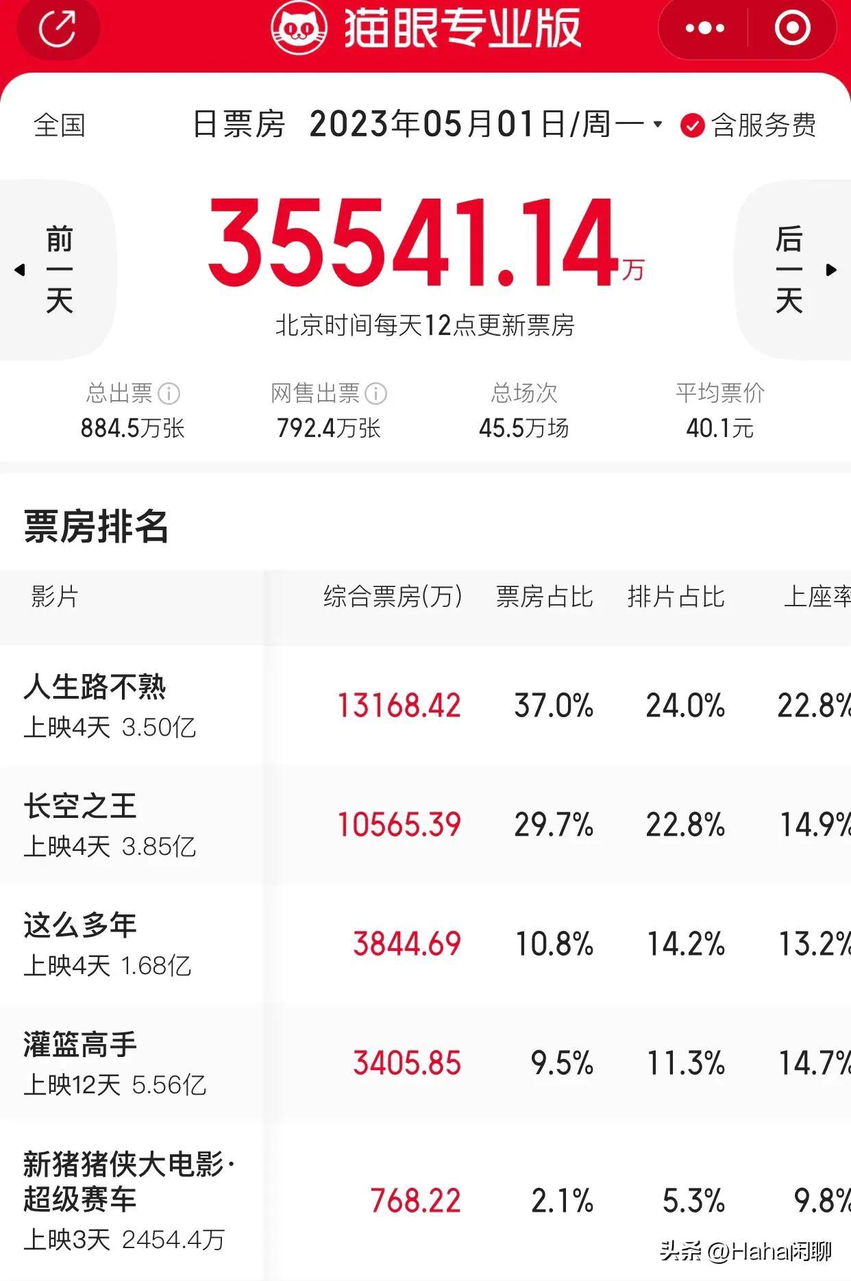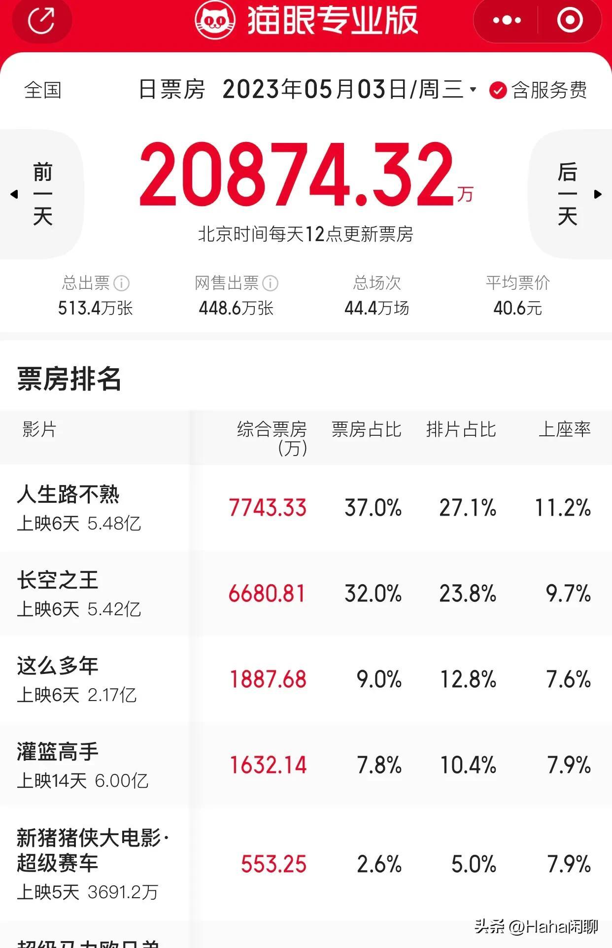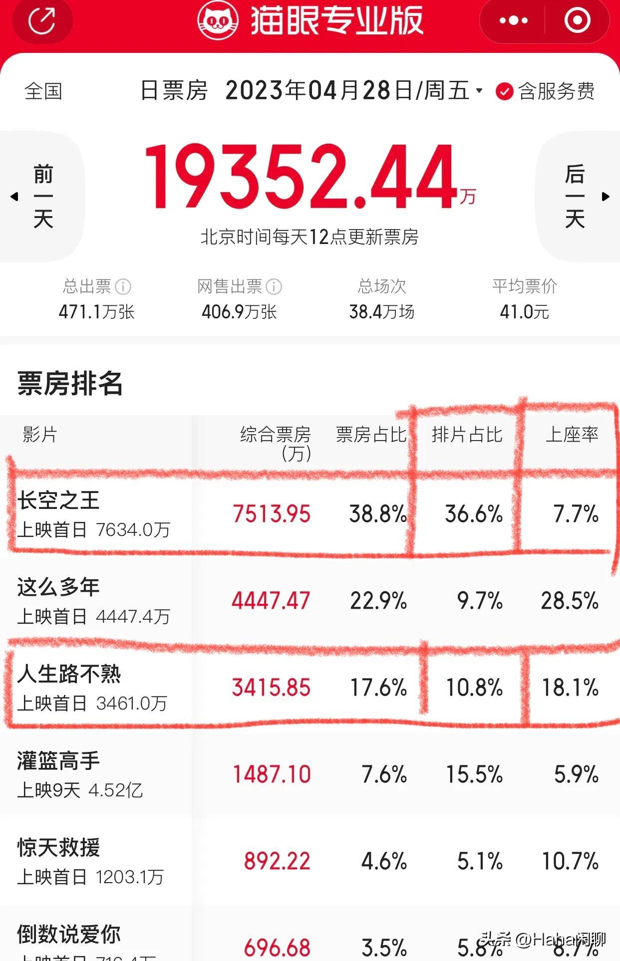 随后几天《人生路不熟》票房、排片渐渐超过《长空之王》!