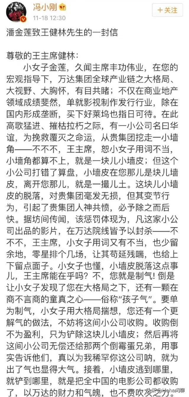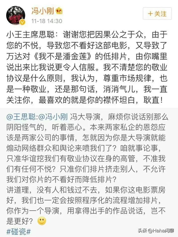 前几年,冯小刚就因为电影《潘金莲》在万达影院的排片少,发长文喊话王健林。