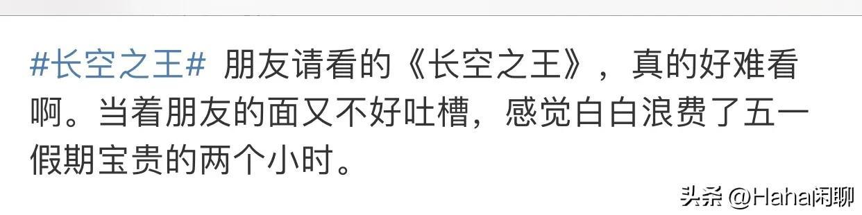 五一假期,某位网友看完《长空之王》后,在个人社交平台吐槽了两句!