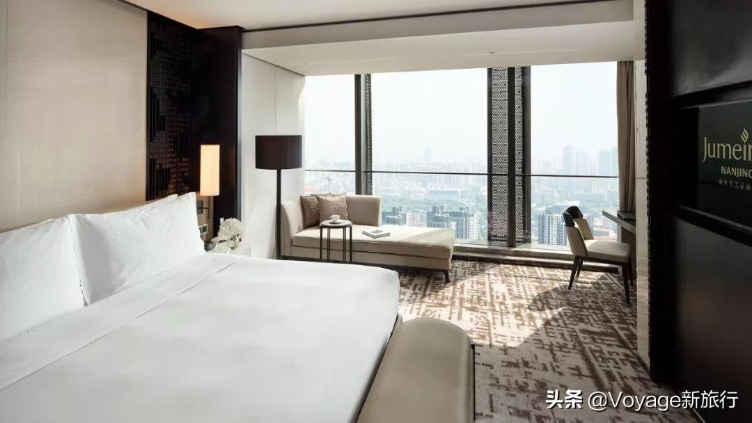 酒店大部分客房面积都在48平米以上,同时配套独立私密的阳台,可远眺扬子江,或静思,或怀古,抑或小酌一番,赏美景。