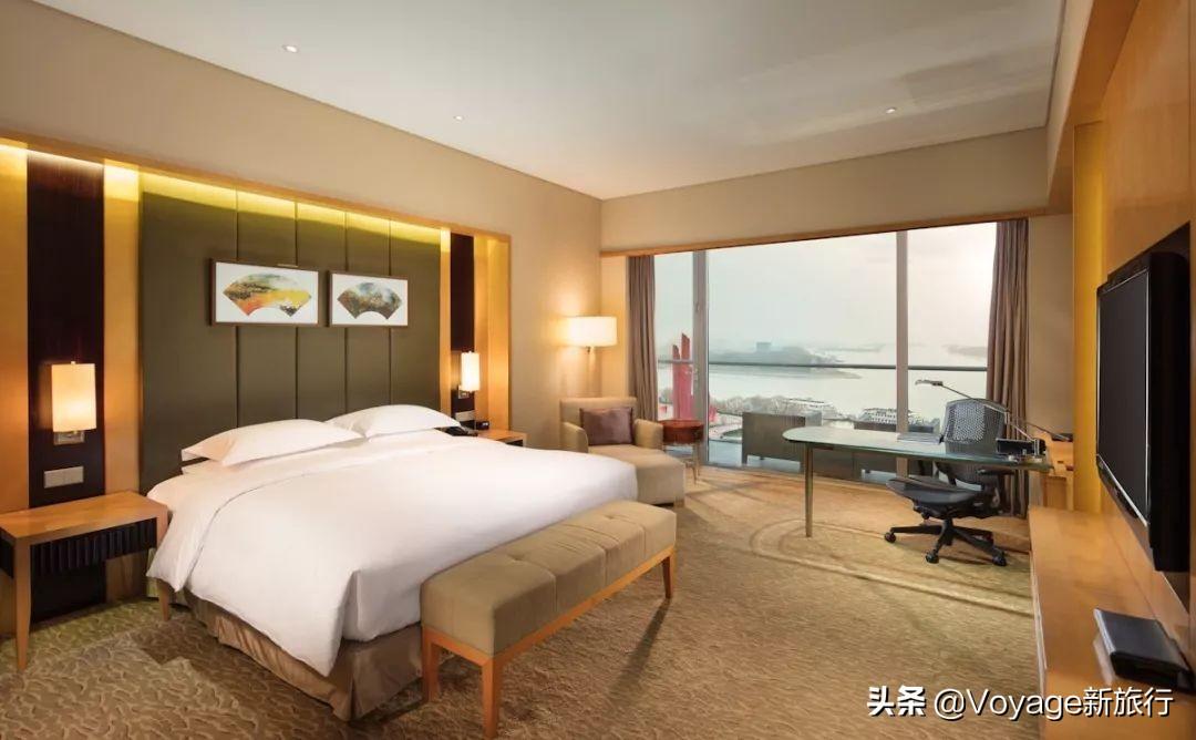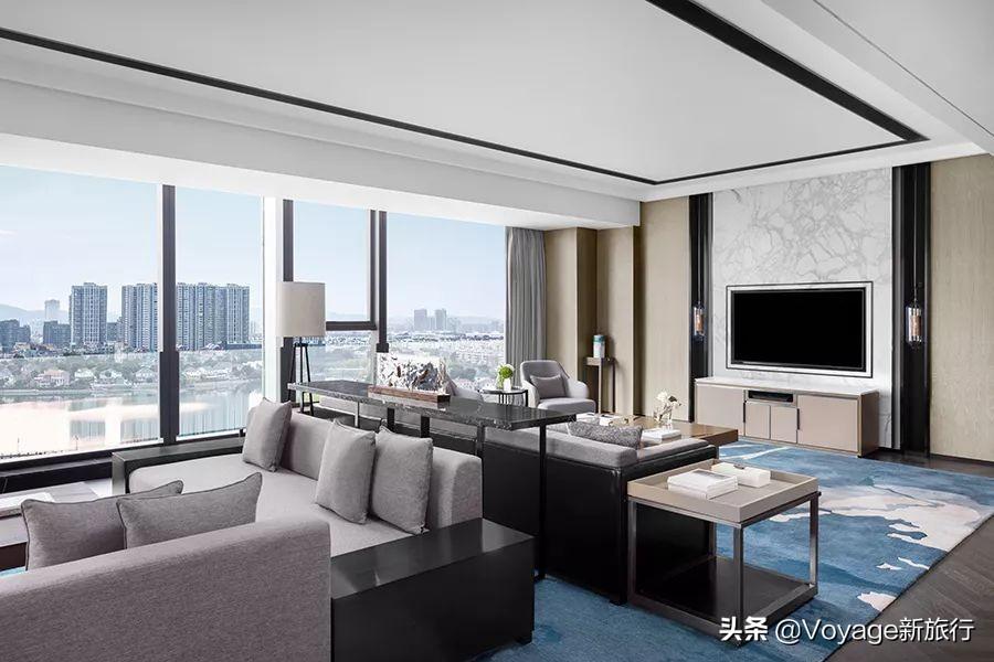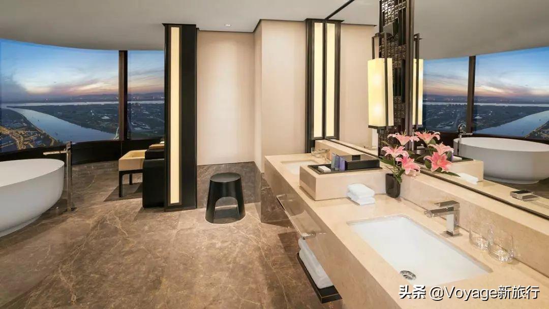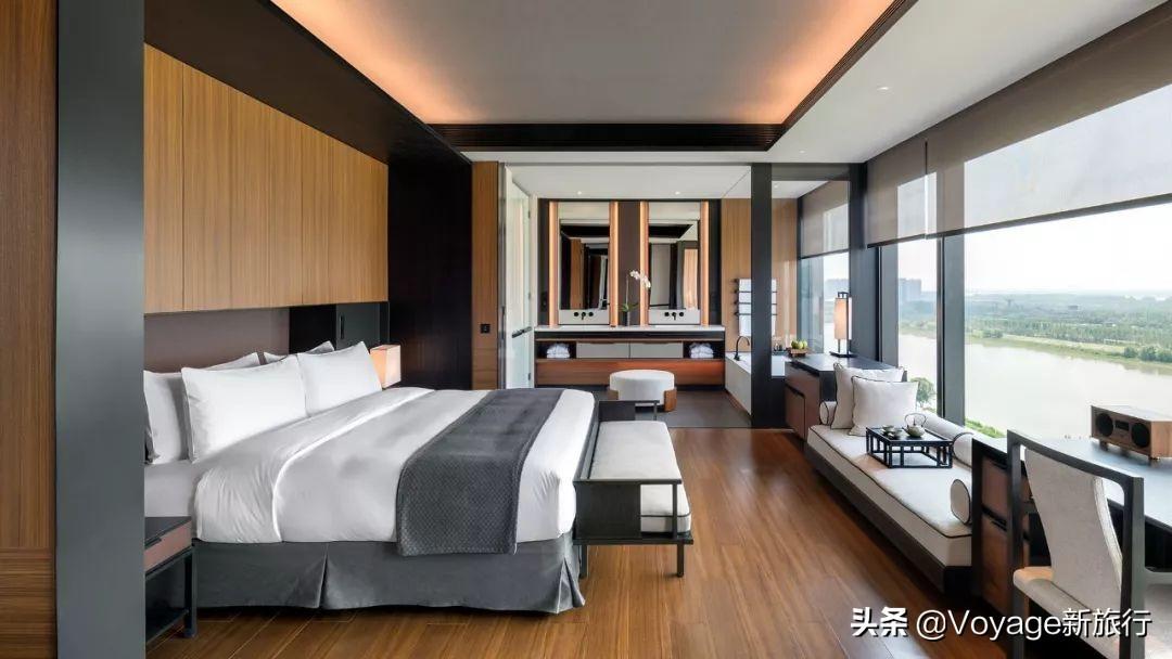 酒店拥有152间客房及套房,面积自60平米起,均拥有面宽10米的全景落地玻璃及独立半开放阳台可将秀美庭院景致或浩瀚长江壮丽景色尽收眼底。