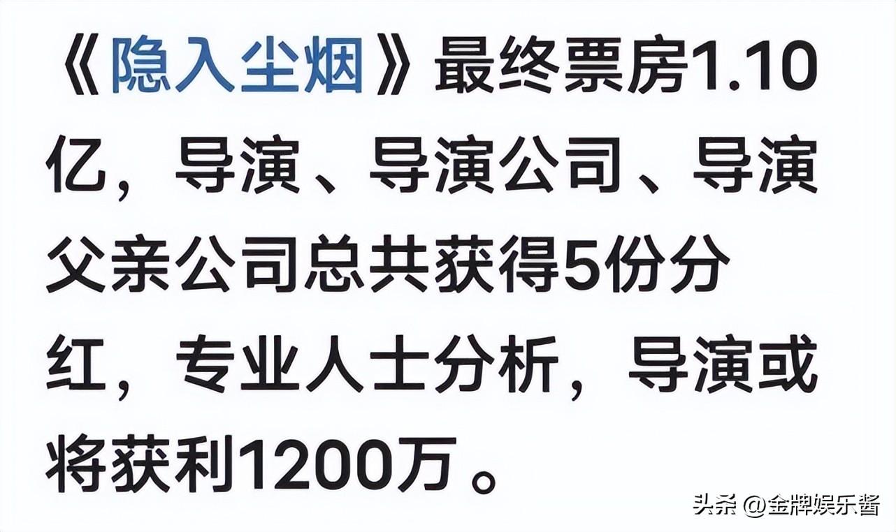 《隐入尘烟》票房分成出炉!导演李睿珺获利1200万-票房10亿导演赚多少