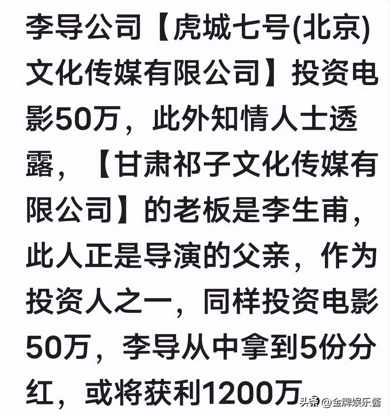 根据知情人的说法,这次导演李睿珺等人,可以说是赚大了,预计分到他手里的,会高达1200万左右