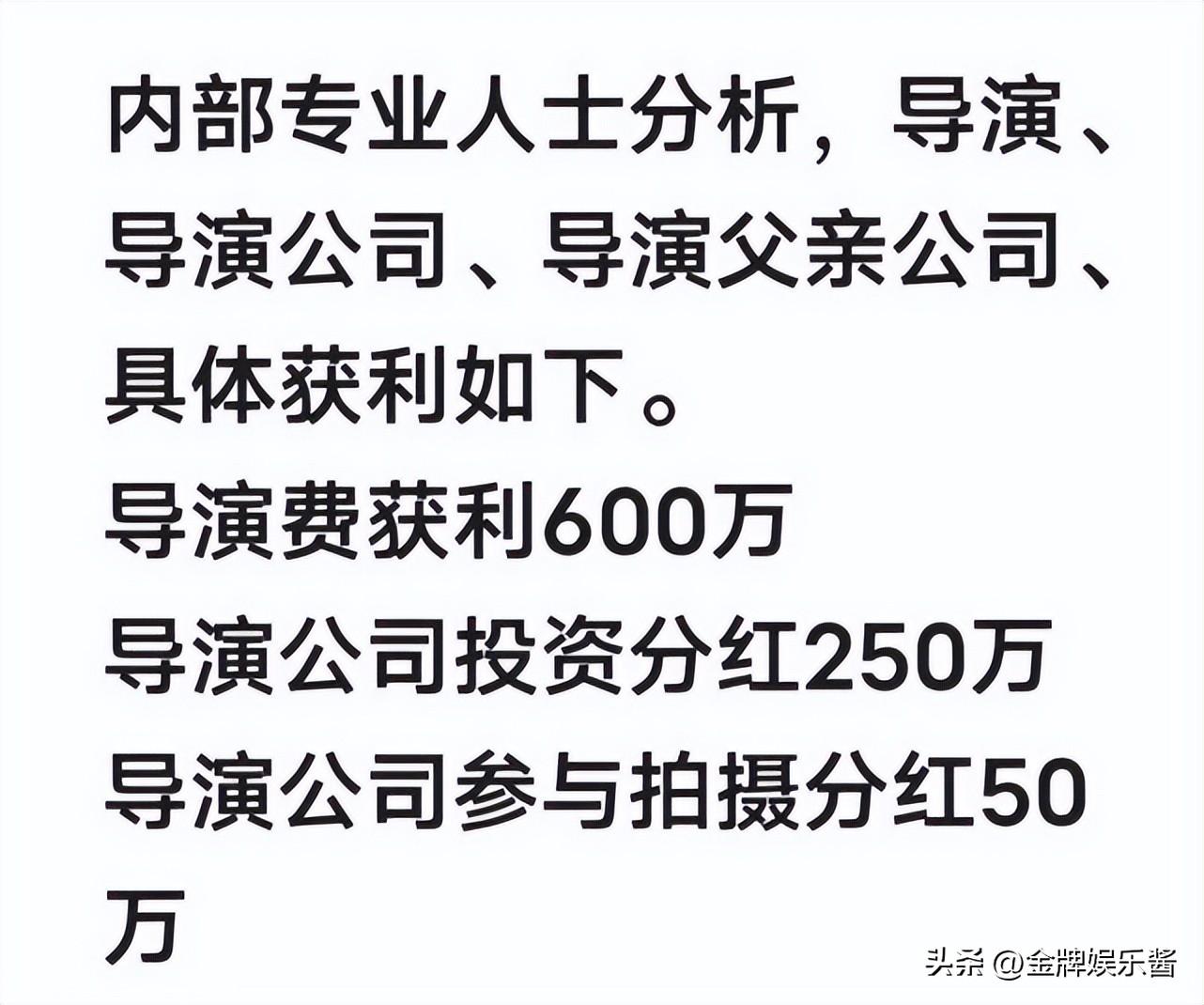 比如说,导演费,分红收益,投资收益,甚至导演的父亲,演参与了这部戏的投资