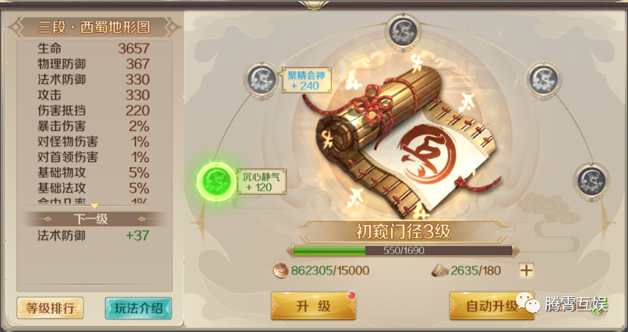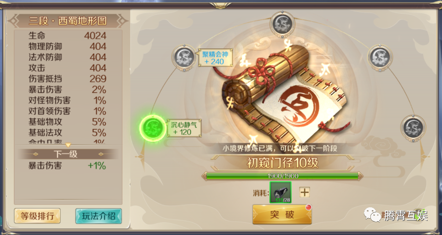 阶段等级达到十级后,需要突破到下一个阶段啊可继续研习。