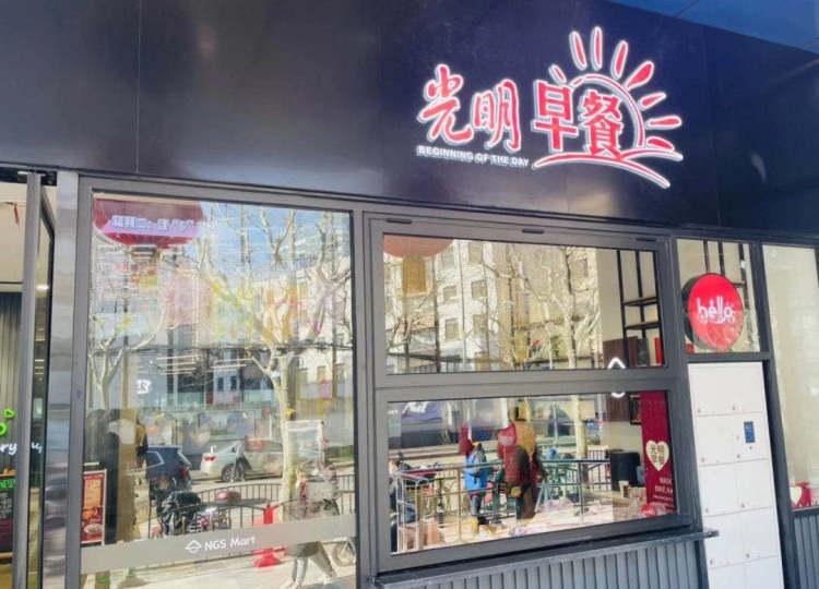 在柳州路上,NGS农工商“光明城市厨房”概念店引人注目,点内开设了欧系推窗式的光明早餐购买专窗,早餐类型设置中西合璧,干湿混搭。专窗旁还特设了早餐柜,顾客可通过“光明早餐”微信小程序实现“网订柜取”,在小程序提前下单,到自提柜扫码取餐。这也是NGS Mart农工商超市精改第10家店。