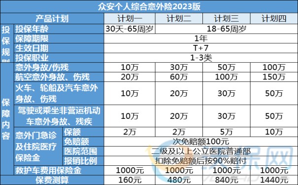 众安个人综合意外险2023版四种方案有什么区别?